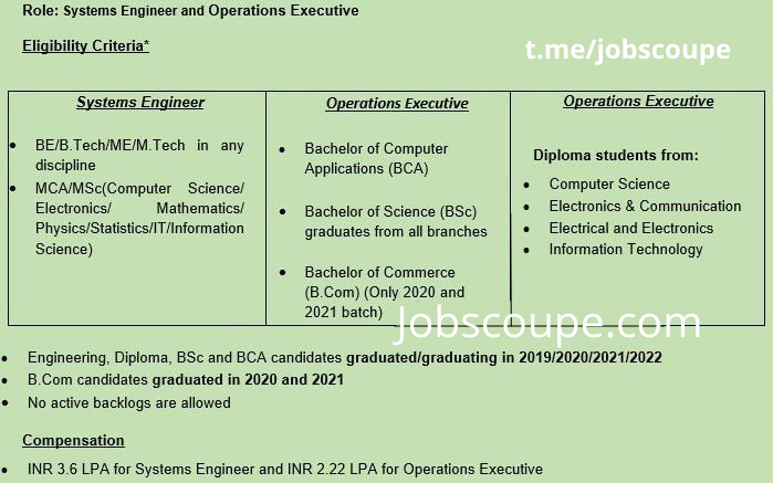 - INR 3.6 LPA for Systems Engineer